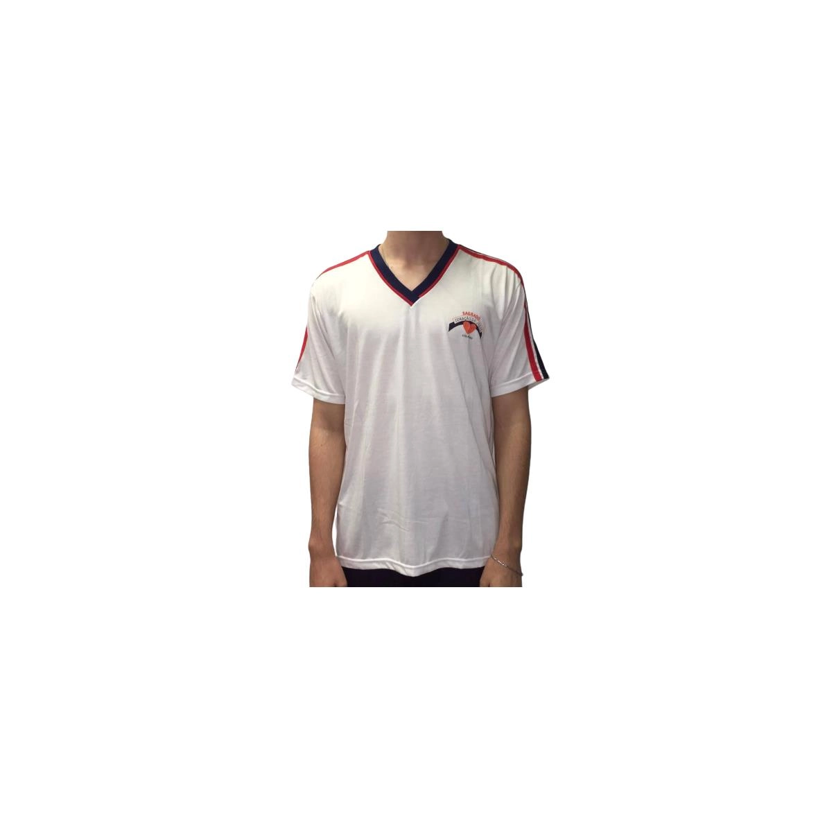 Malha de alta qualidade com tratamento Antipilin que auxilia a malha evitando as indesejáveis bolinhas conservando o aspecto e durabilidade da camisa, mangas curta nas cores branco com vermelho ou vermelho com braco