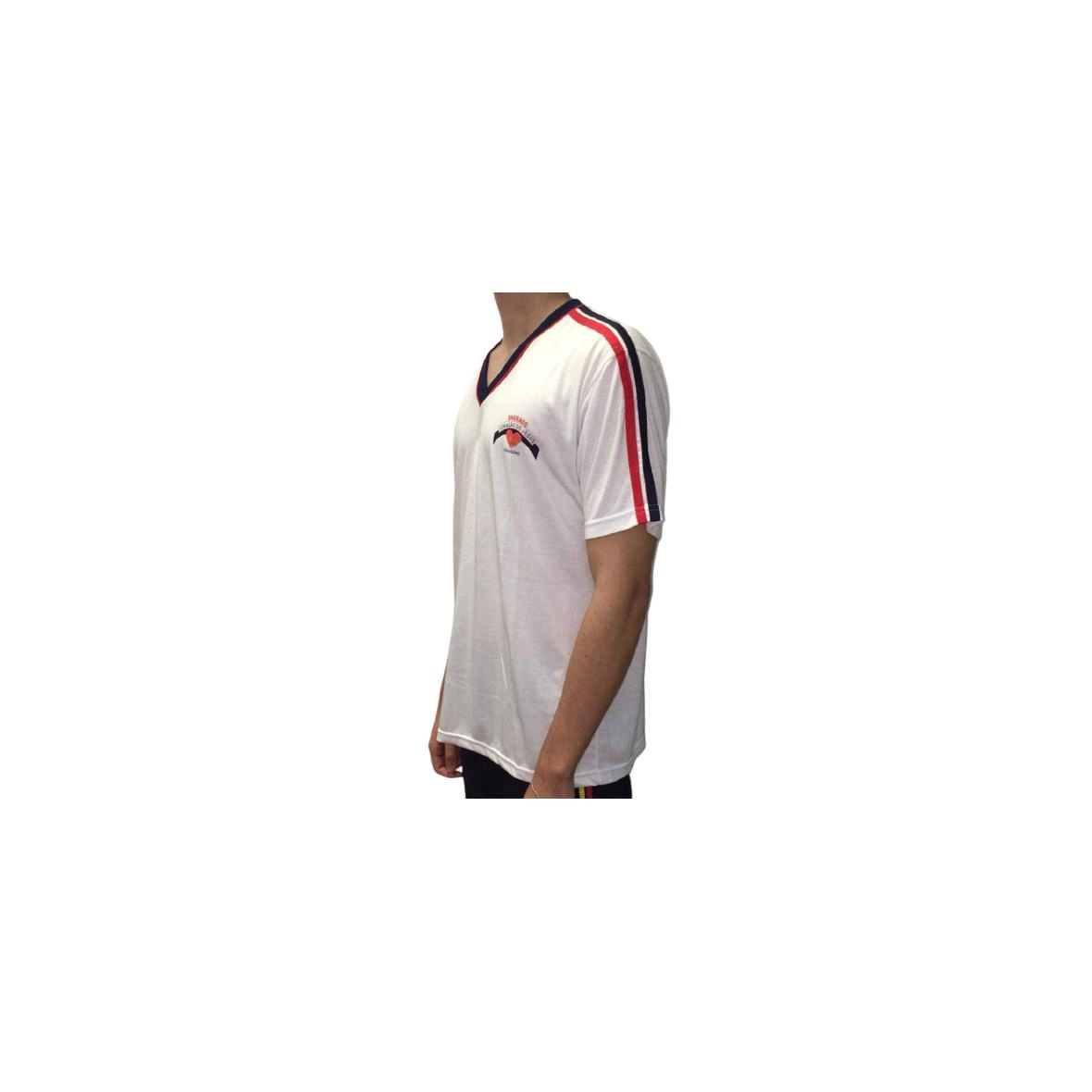 Malha de alta qualidade com tratamento Antipilin que auxilia a malha evitando as indesejáveis bolinhas conservando o aspecto e durabilidade da camisa, mangas curta nas cores branco com vermelho ou vermelho com braco